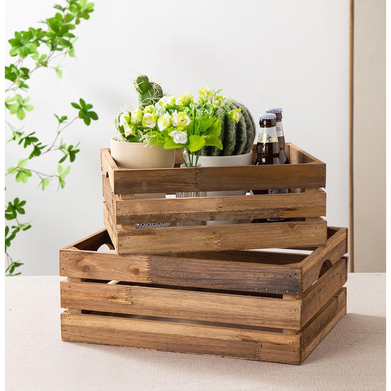 - MULTIPLE PURPOSES - These decorative crates are versatile, they are great for organizing toys, cosmetics, sundries, kitchen supplies, clothes, fruits, vegetables, they are also suitable for displaying potted plants, pottery, books or other decorations.
