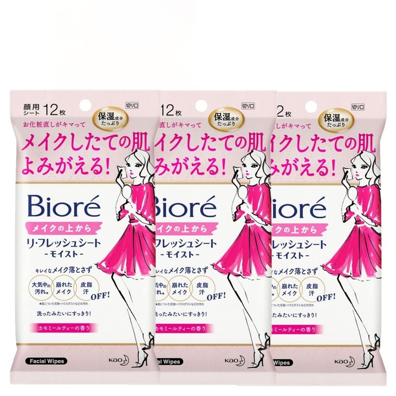 [Set of 3] Over Biore Makeup Re-Fresh Sheet, Moist, Pack of 12