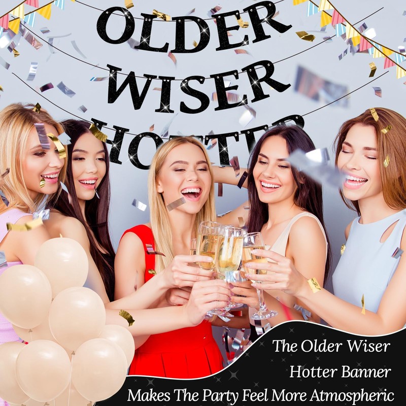 - Fun Design: You will receive a charming banner with "Older Wiser Hotter" letters in black glitter, use our banners to add beauty, create a good atmosphere, stand out, bring you laughter and leave guests with unforgettable memories