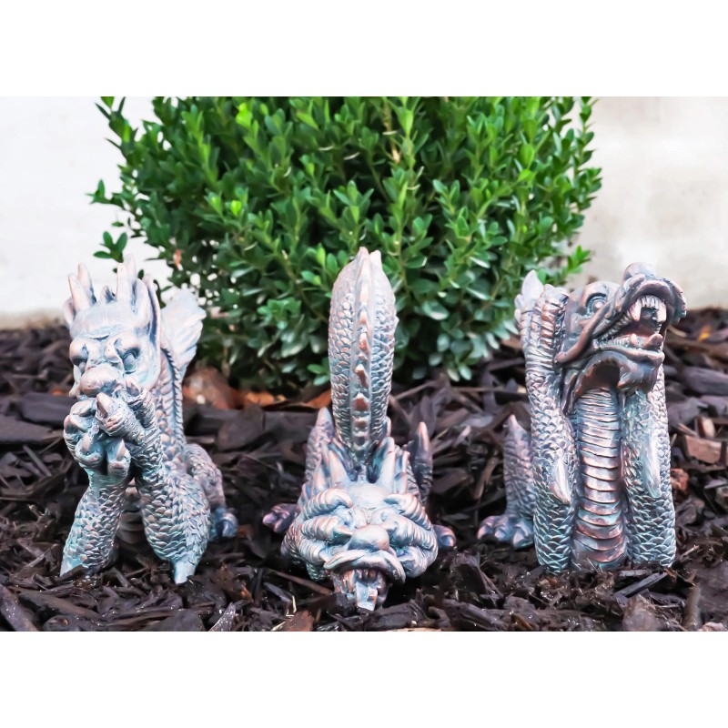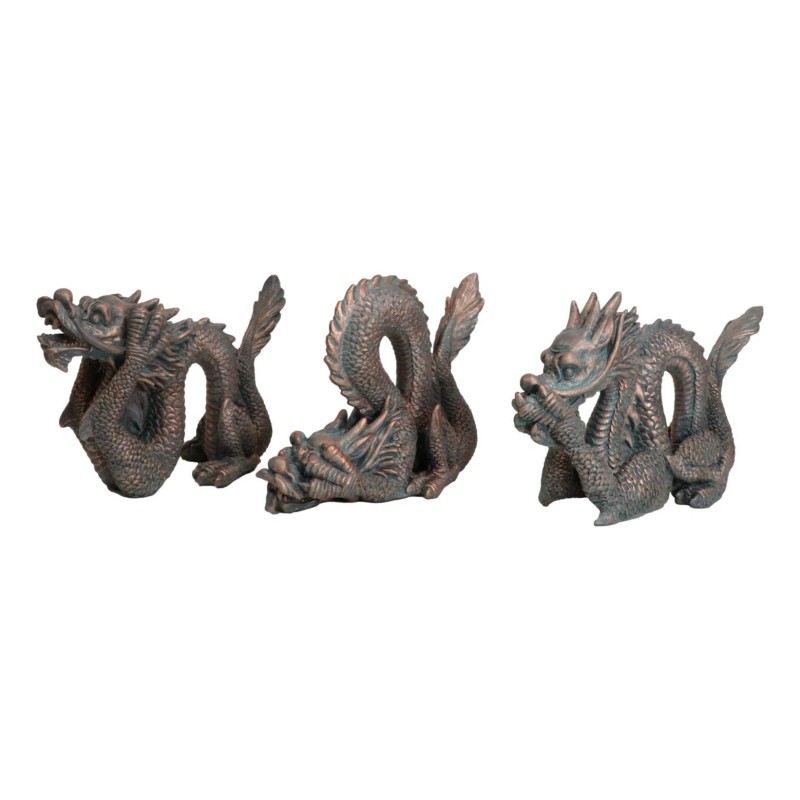 Set of 3 See Hear Speak No Evil Oriental Shen Long Celestial Dragons Figurines