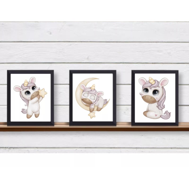 Set of 3 UNFRAMED Wall Art Prints Baby Unicorns Dreams for Nursery Girl Bedroom