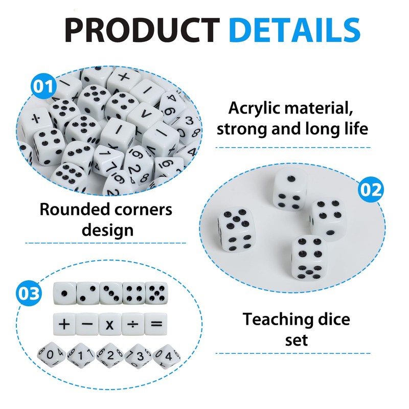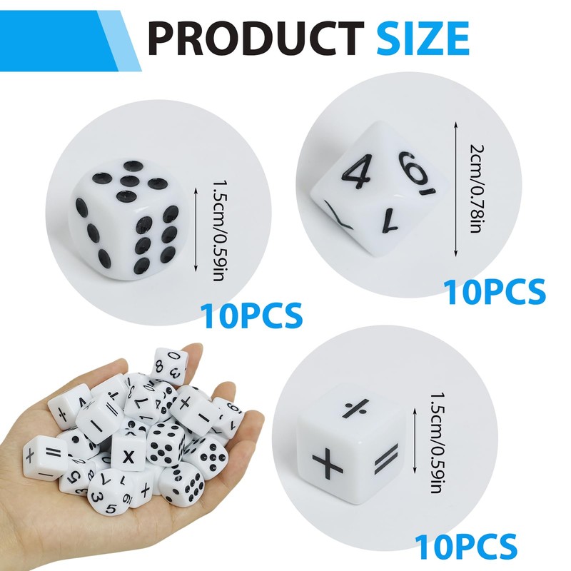 • Packing list: you will receive 10 mathematical operation cubes + 10 10-sided number cubes + 10 6-sided dot cubes, the quantity is enough for you to have fun