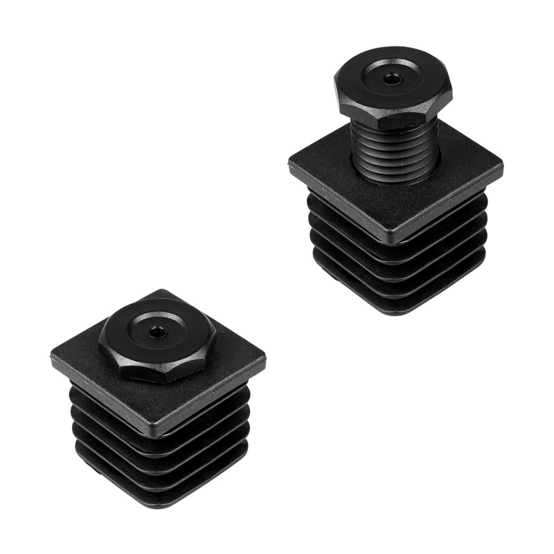 - Set of 4 adjustment plugs, adjustable gliders, height adjuster suitable for 40 x 40 mm pipe outer dimensions. Combination of plug-in sockets/threaded plugs and ground leveling screw/adjustment screw.