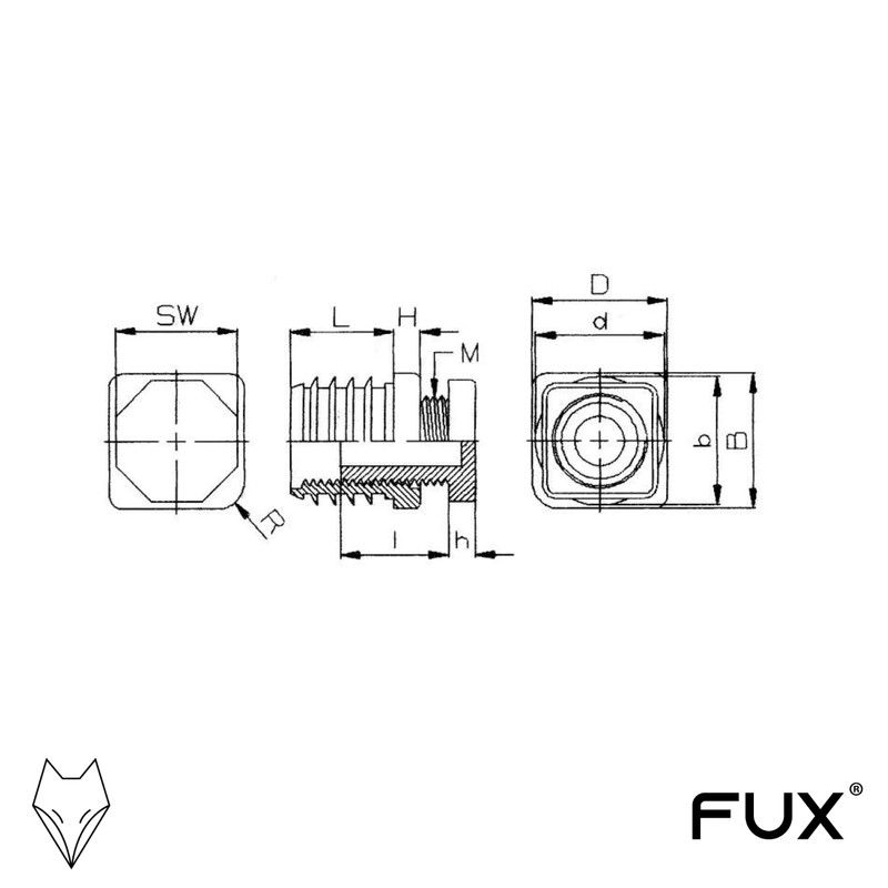 - Tube outer dimensions: 40 x 40 mm, head edge length (D x W): 40 x 40 mm, slat dimensions (dxw): 37 x 37 mm, set screw (mxlxh): 22 x 20 x 5 mm, height (H): 5 mm, length (L): 29 mm, spanner width (SW): 28 mm, tube wall thickness: 1.5-2 mm