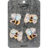 A set of four magnets featuring whimsical bee-shaped designs. Magnets are packaged on a galvanized metal backer card.