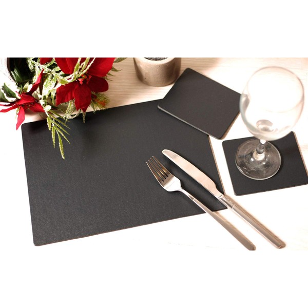 Set of 4 Charcoal Elementary Leatherboard Placemats and 4 Coasters - Made in Britain