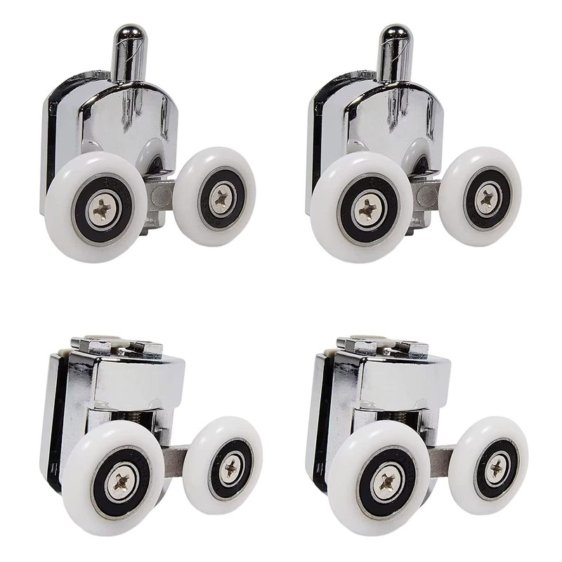 - Set of 4 New Double Shower Door Rollers (2 upper rollers and 2 bottom rollers) with chrome covers
