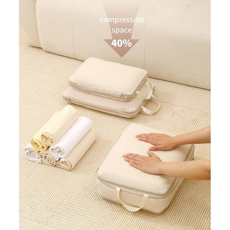 Set of 4 Compression Bags for Travel, Luggage Organizers with Double Zipper, Save 40% Space