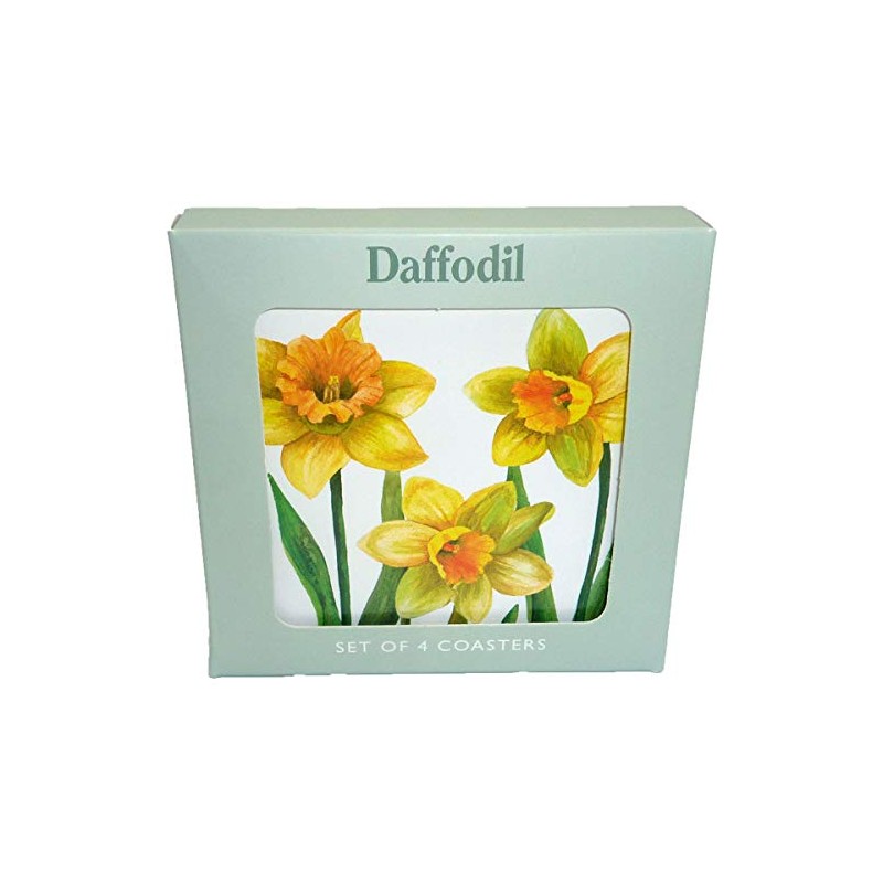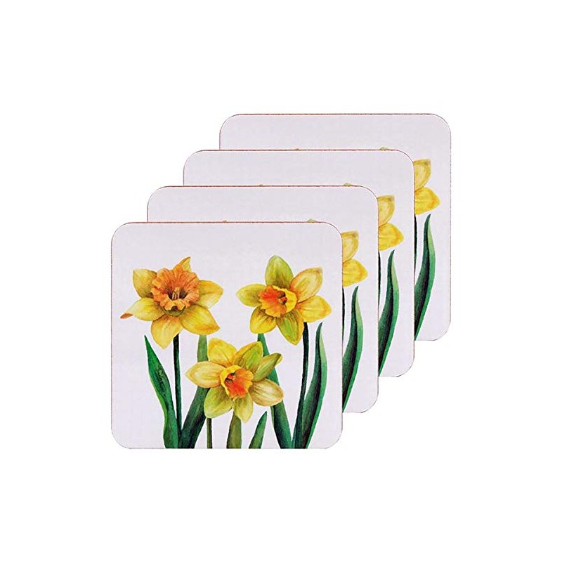 Set of 4 Daffodil Coasters Flower Design Cork Kitchen Dinner Table