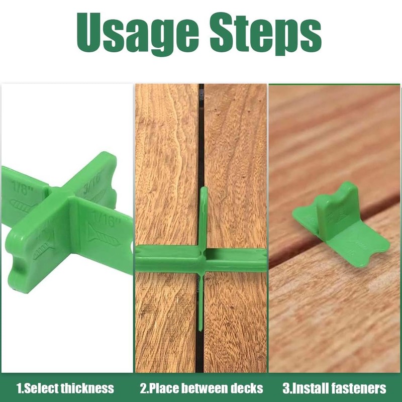 - Special design: Multifunctional with 4 adjustable spacing levels for even joints between the boards. The printed screw alignment allows for quick and accurate installation. Vibrant colours allow for quick size recognition and easy finding in the toolbox.