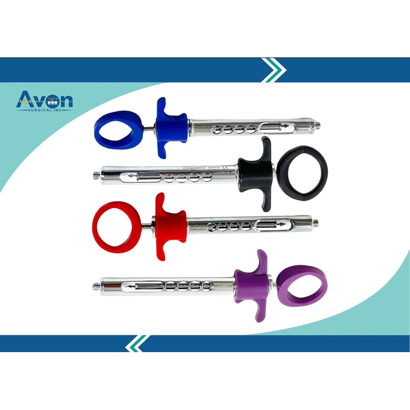 - Includes: 4 Each - Dental Anesthetic Self-Aspirating Syringe 1.8cc with Plastic Handle (Blue+Black+Red+Purple).