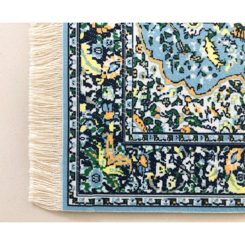 - Made with Care: The top of each rug is a velvet-style fabric with a high quality print of an Oriental and Turkish rug design. This gives the carpet a very soft and authentic look. The white fringes on each end make these minis realistic and fun.