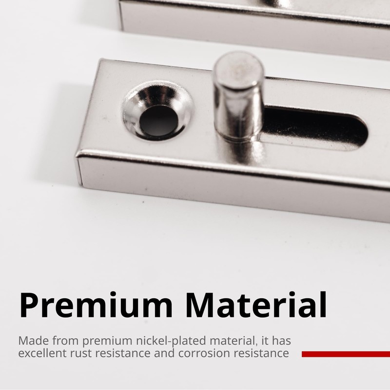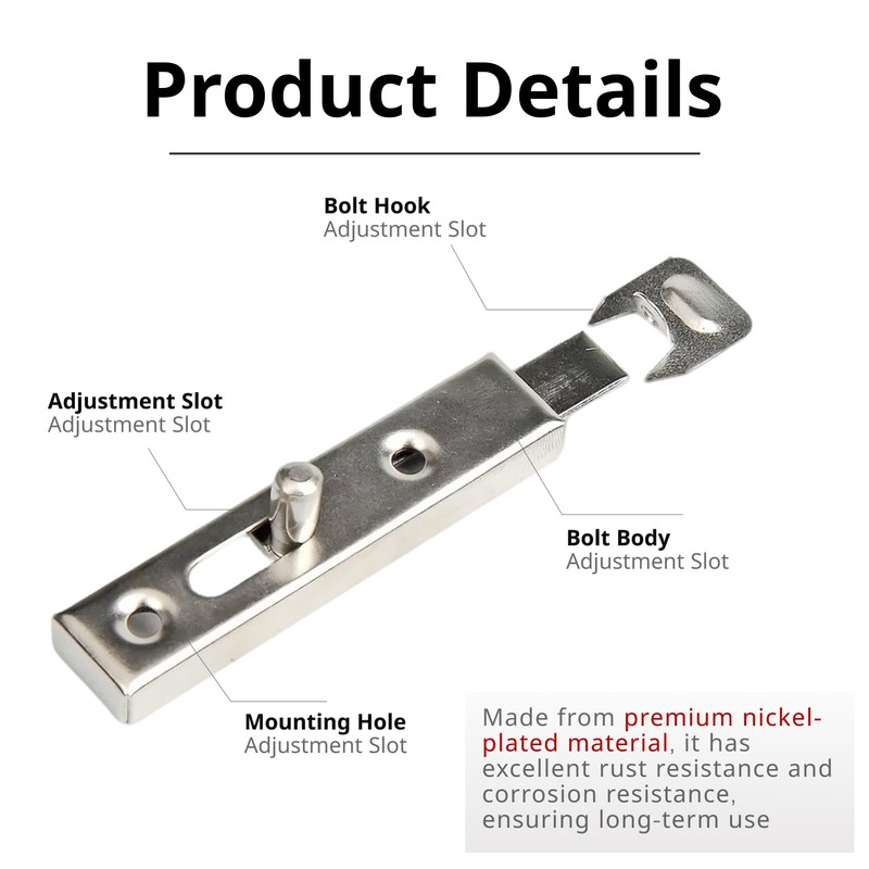 - DURABLE CONSTRUCTION Rounded bolt latch provides reliable burglary protection. The latch is made of solid steel, nickel plated and visible to screw, ensuring durable and safe use.