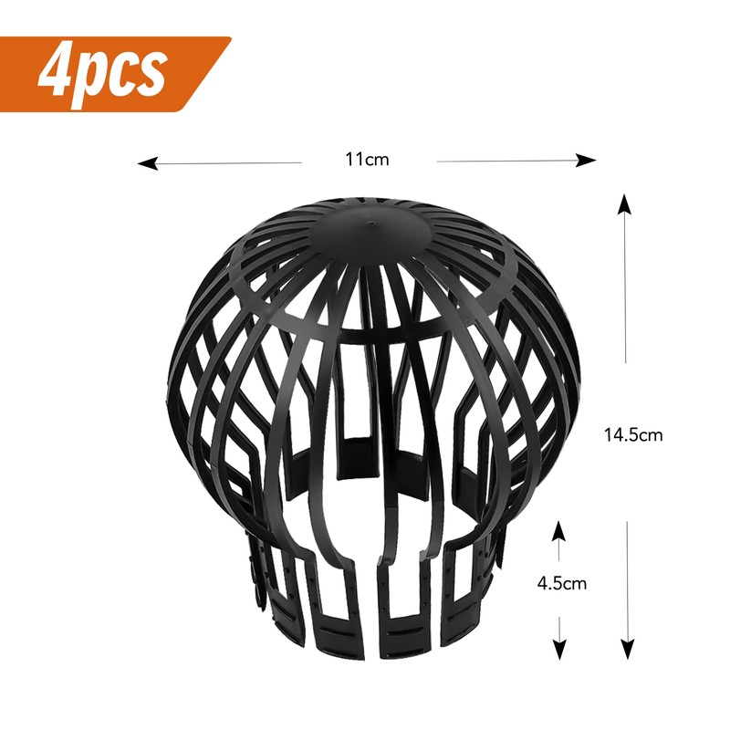 - Common Size These gutter traps have the most common size of approx. 11 cm diameter and 14.5 cm height. Fits well on the most common sizes of downpipes.