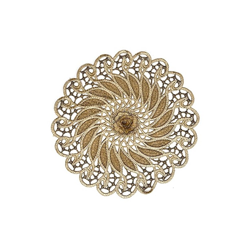 Set of 4 Lace Round Embroidered Table Runner, Handmade Laced Gold Lace Table Runner, Coasters, Crochet Lace Doilies, Placemats, Tablecloth for Kitchen, Party, Wedding Cups, Vases 26-28 cm