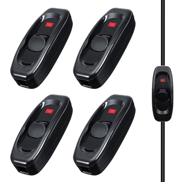Set of 4 Lamp Switch Intermediate Switch Cable Switch with LED Indicator Light 250 V 10 A Cord Switch for Desk Lamp Bed Lamp Table Lamp Small Appliances (Black)