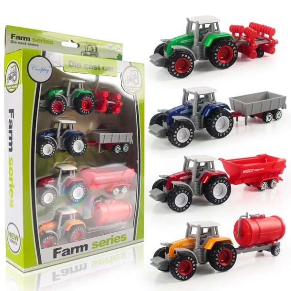 Set of 4 Mini Tractor Toy Cars, Tractor Set with Front Loader