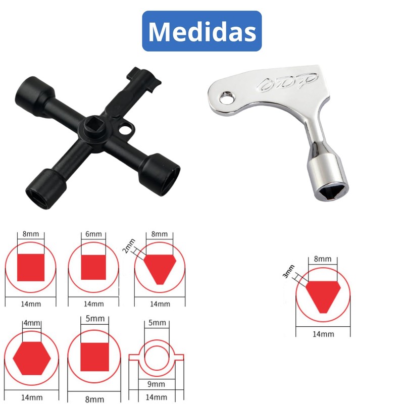 Set of 4 Multifunctional Key | Water Meter Wrench | Electric Cabinet Key | Lift Key | Gas Meter Key | Valve Wrench | Black and Triangle Master Wrench for Emergency