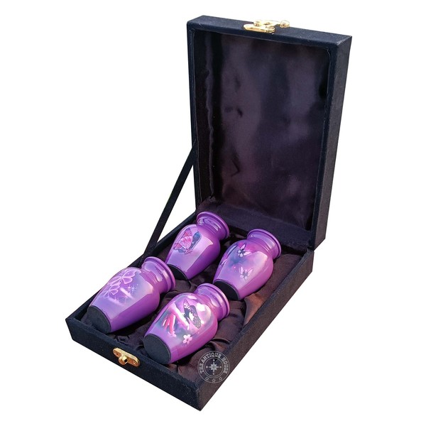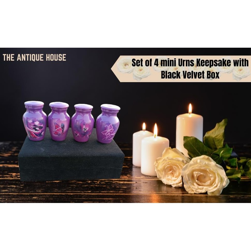 Set of 4 Pretty Keepsake Urns Small for Human Ashes Mini Funeral Cremation Pot with Black Velvet Box