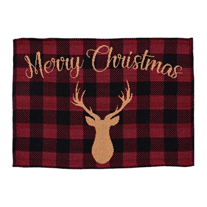Set of 4, Red and Black Checkered Christmas Reindeer Merry Christmas Tapestry Placemats for Holiday Season, Home Decoration Kitchen Dining Table, Easy to Clean Size: 13" x 19".