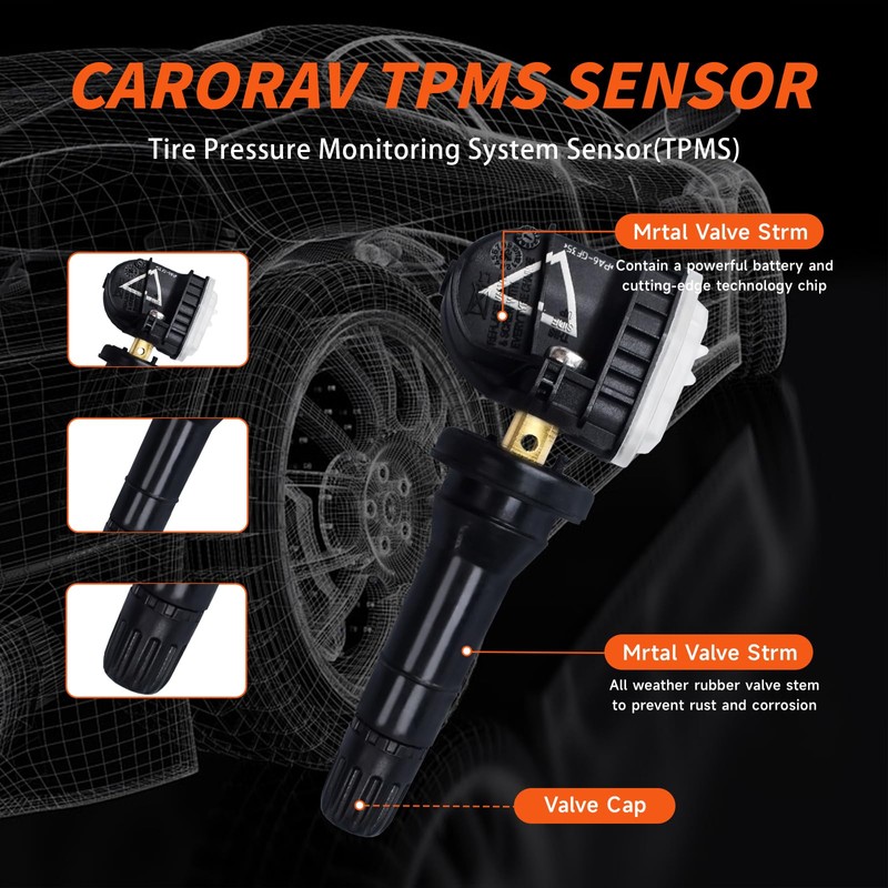 - 【NO SENSOR PROGRAMMING REQUIRED】: The tire pressure monitor system TPMS come pre-programmed specifically for your make/model/year of vehicle, and the tire sensor is manufactured to OEM specification, it is very easy to install, not need to programmed again, after installation just need activate them with scan tool.