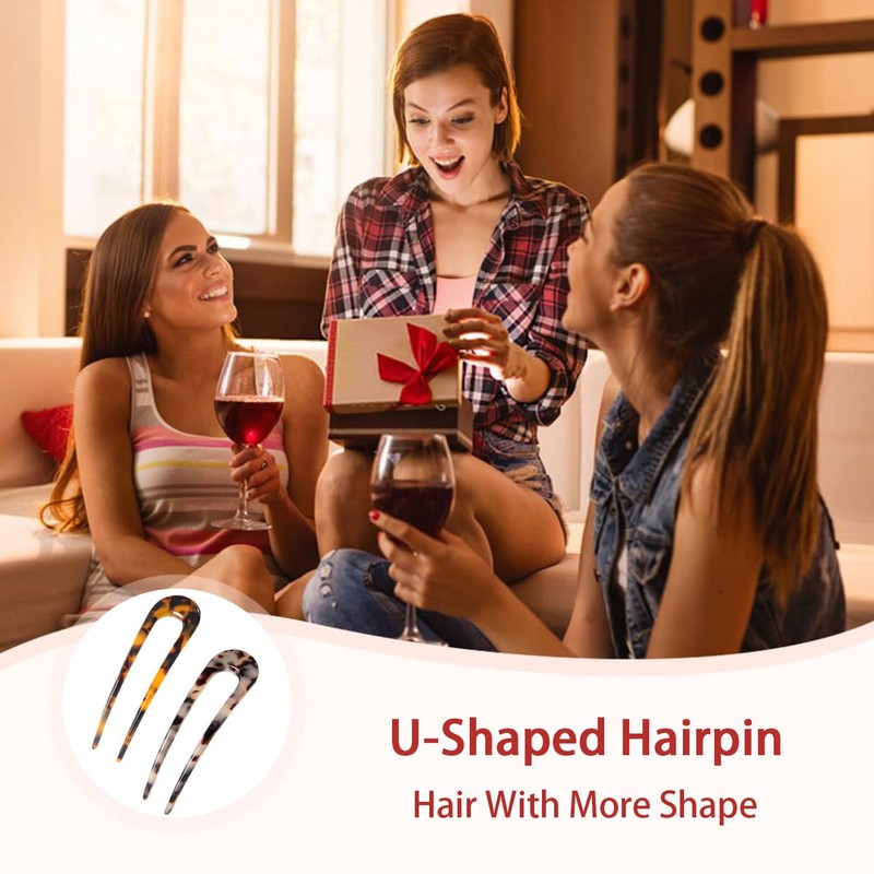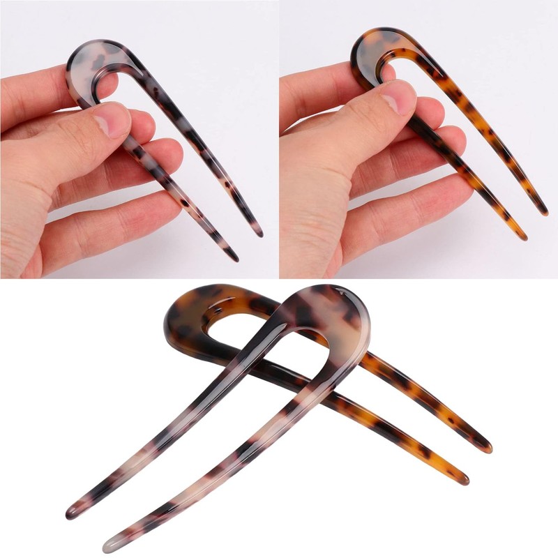 Twist U Shaped Hair Pin Fork, Made of high-quality fiber acetate board material, it is relatively thick and does not break easily. They are comfortable and won't damage your hair.