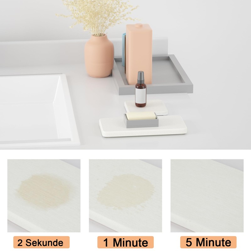 - *Multi-purpose. *These absorbent mats are incredibly versatile and are suitable for holding soaps, cups, soap bottles, dish sponges and makeup bottles. Their design ensures quick water absorption and keeps tables and countertops dry. Designed for the modern home, they bring cleanliness, comfort and order to any room.