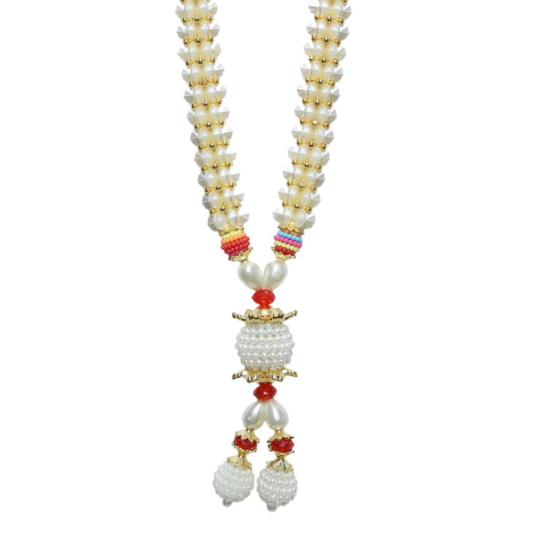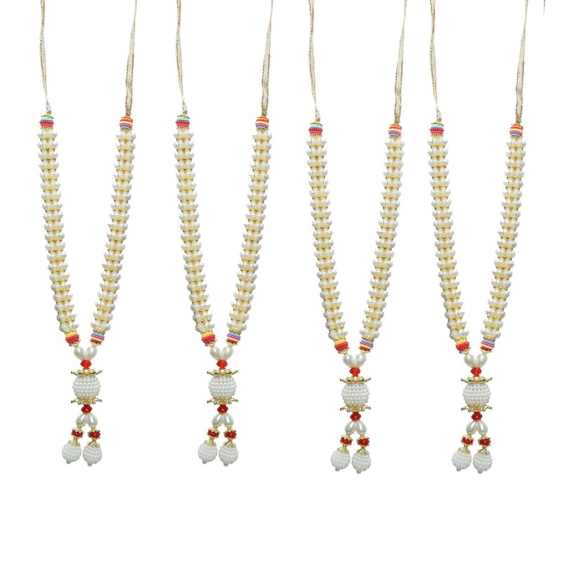 - The Set of 4 beautiful Artificial Garland is made of White with Golden Artificial Beaded Moti Mala , Size :- Lenght 6" Inches