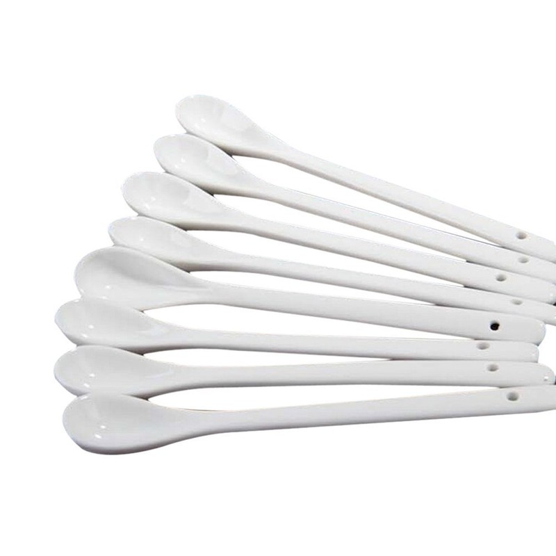 Set of 4 White Long Handle Ceramic Spoons for Tea Coffee Ice Cream Cutlery Mixer