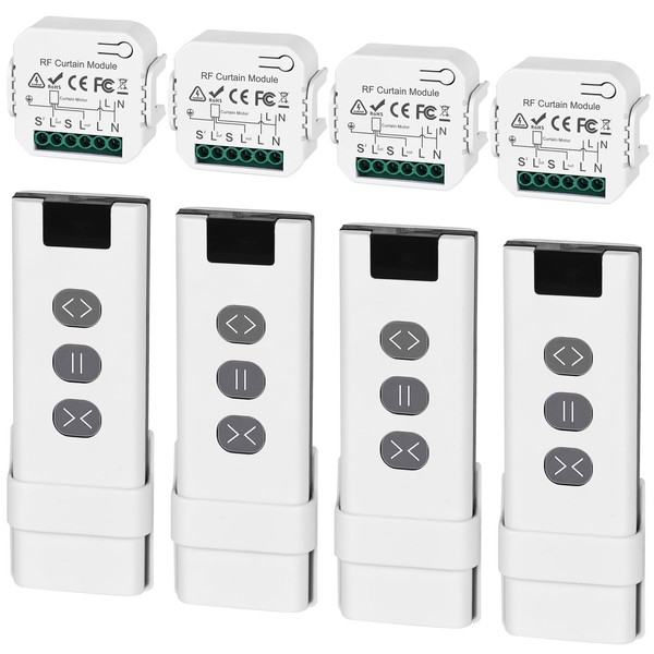 - Range of applications: you will receive 4 x radio receivers, 4 x remote controls. Wireless roller shutter switch retrofit set easy switching and control of electric motors for roller shutters, blinds, awning and sun protection.