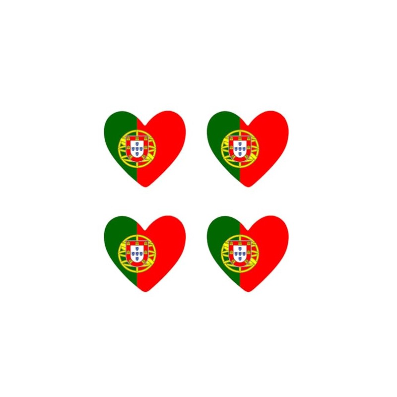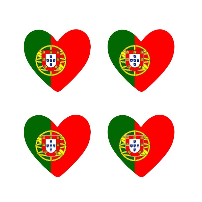 Set of 4 x Portugal Flag Heart Iron on Transfer