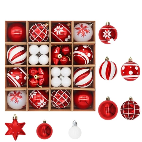 Set of 42 Christmas Baubles Ornaments for Holidays Party Decoration Tree Decorations (Red and White, 24 x 24 cm)