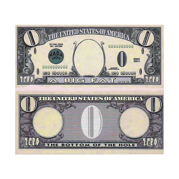 Set of 5 Bills-Zero Dollar