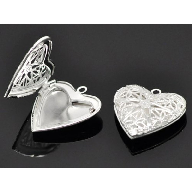 Set of 5 Heart Fiddigree Openwork Locket Pendants Silver Color