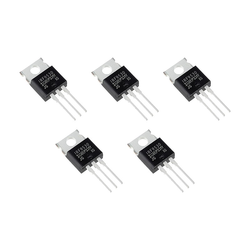 This set contains 5 MOSFET P-Channel IRF9530 in TO-220 format.