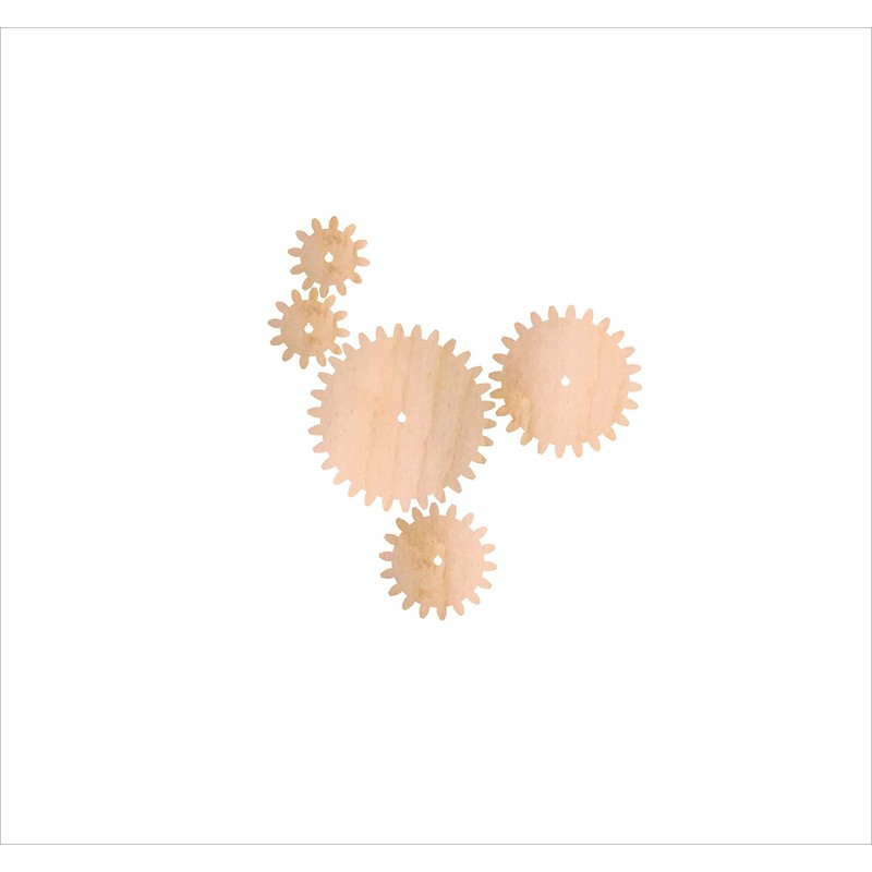 Set of 5 Wooden Interchangeable Wood Gears. Works for DIY Craft Project, Wall decor, or Functional Mechanisms 1/4" Thick Wood.