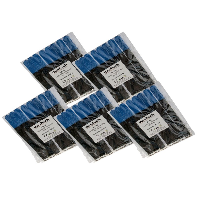 Set of 50 Velcro Cable Ties, 160 x 16 mm, Black/Blue