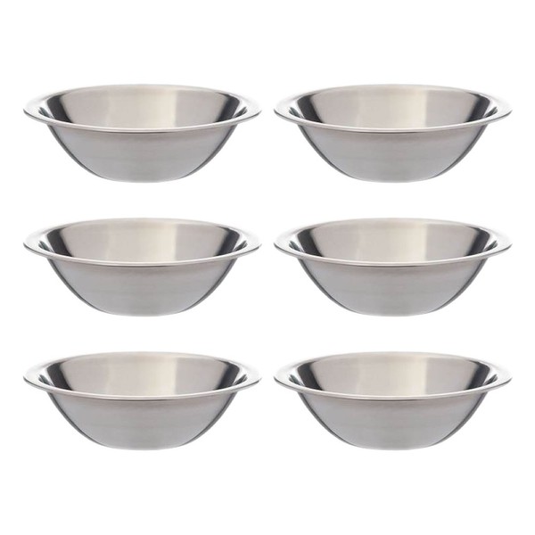 SET OF 6 - 6 1/2 Inch Wide Stainless Steel Flat Rim Flat Base Mixing Bowl