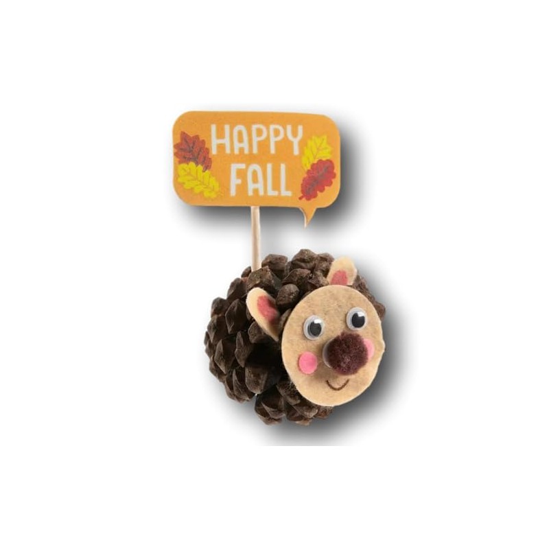 Create a cute and charming friend this fall! Pinecone Hedgehog Craft Kit includes everything you need to turn small pinecones into adorable hedgehogs that hold a sign reading "Happy Fall" in white print. Simply follow the instructions on the back to create a one-of-a-kind hedgehog!