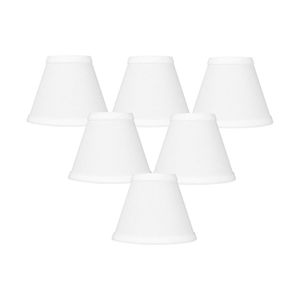 - VERIFY SIZE FOR PERFECT FIT: 3" Top x 6" Bottom x 5" Slant Height - Chandelier White Linen Clip-On Lampshade. For best fit, measure you existing shade before purchase. Clip on will fit candelabra sized light bulbs used in chandeliers. Dual Clip ensures shade will stay in exact position.