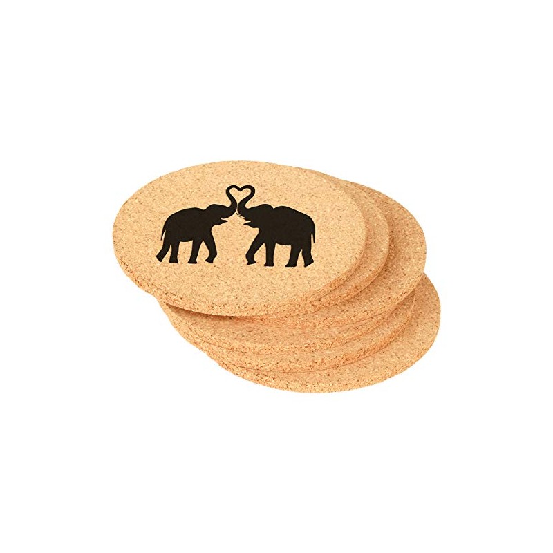 Set of 6 Cork Drink Coasters Elephants Making Heart (Round)