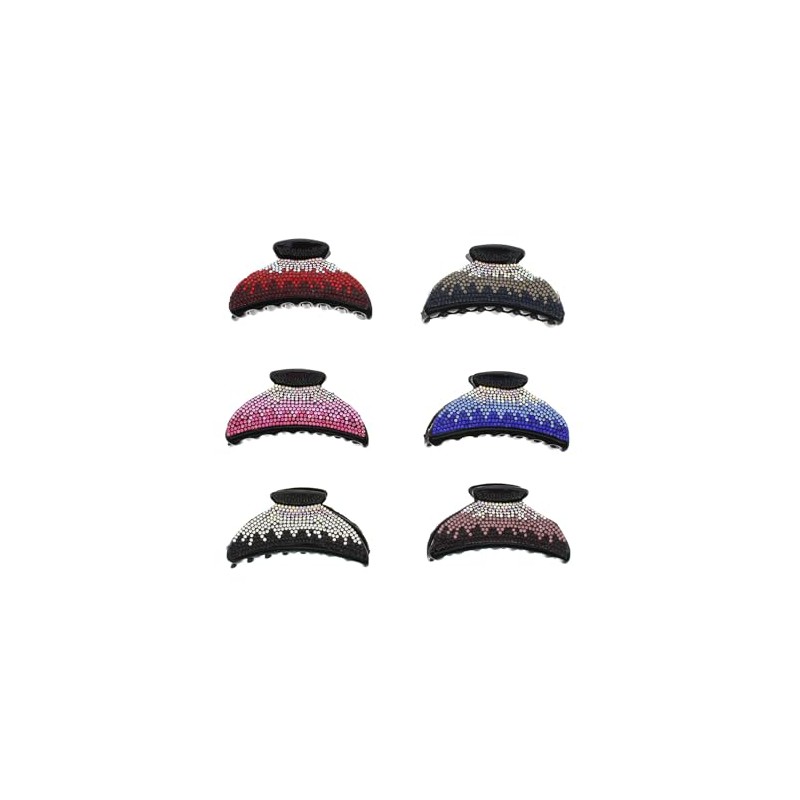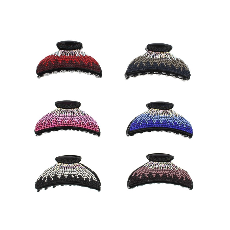 Set of 6 Fashionable Assorted Colour Tri-Tone Diamante Stone Clamps