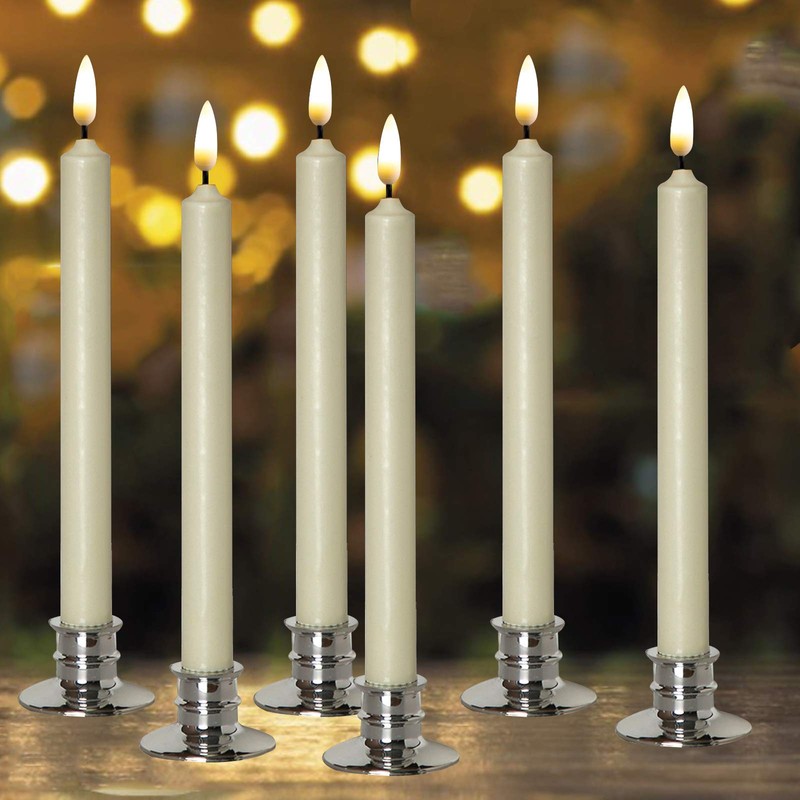 Set of 6 Flameless Windows Candles- Ivory Wax .with 6 Sliver Candlesticks .10 Inch, Flickering Battery Operated LED Candle Window Lights, Window Candles with Remote Control- Romance Dinner Candle