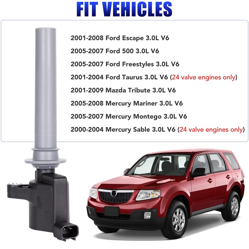 - Compatibility: Ignition Coil Pack and Spark Plugs for 2001 2002 2003 2004 2005 2006 2007 2008 Ford Escape 3.0 V6 | 2001-2009 Mazda Tribute 3.0 V6 | 2005-2007 Ford Freestyles 3.0L V6 | 2001-2004 Ford Taurus 3.0 V6 | 2005-2007 Ford 500 3.0 V6