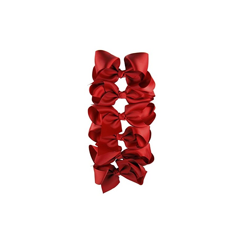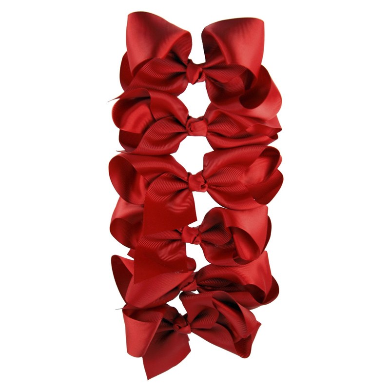 Set of 6 Large Grosgrain Hair Bows (Red)