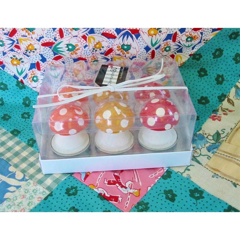 Set of 6 Little Christmas Mushroom Tealight Candles 3 Colors Cute Gift!