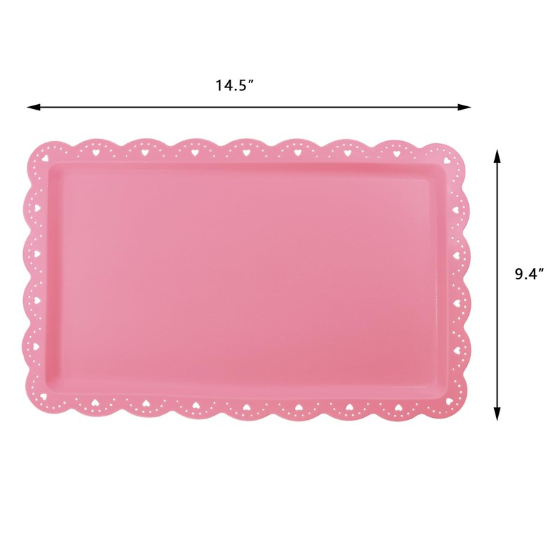 Set of 6 Plastic Serving Trays Food Tray - 14" x 9" Rectangle Serving Platter for Party Cafeteria Kitchen Restaurant, Small Flat Trays for Dessert Fruit Cookie Snack (6, Pink)