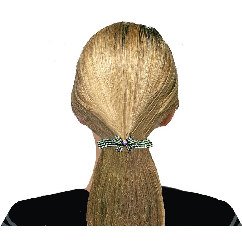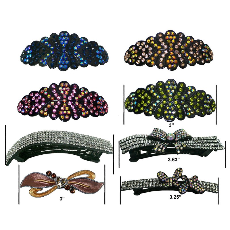 - 3 barrettes from 3.5" to 4" wide in crystal white on black design butterfly ribbon and curvy bar
