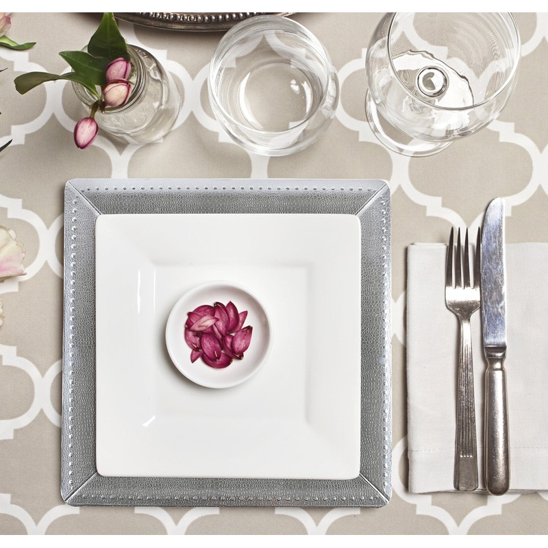 - These elegant, contemporary design square chargers provide an elegant backdrop for special meals, with a rich textured finish and a beaded detail.