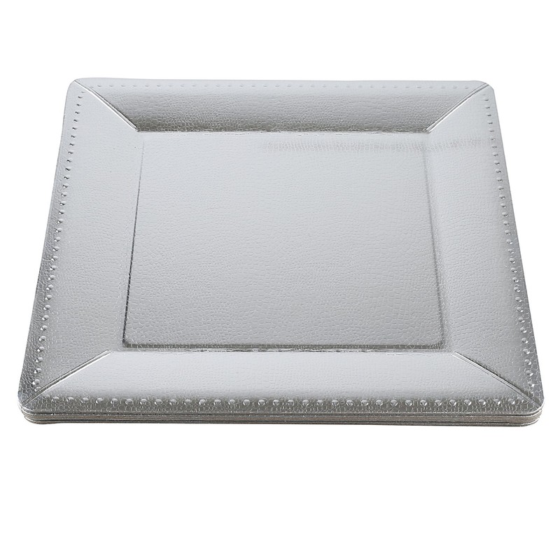 - Set of Ten (10) Silver Spoons and More Charger Collection Large 13" Beaded Texture Square Disposable Charger Plates.